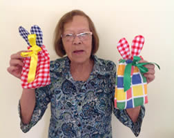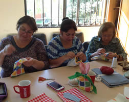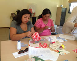 La participante más antigua del taller es la señora Teresa Ibáñez, quien cuida a un nieto que estudia en el Colegio PuenteMaipo. “Hace tres años llegó una circular del colegio a la casa acerca de los talleres, y como estudié costura de joven no dudé un minuto en inscribirme. ¡Me encanta!”, afirma entusiasmada al tiempo que muestra una bolsa con orejas de conejo para guardar huevos de Pascua en la que trabaja actualmente.